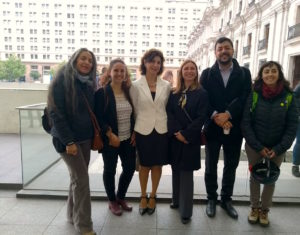 Ximena Salinas, Presidenta de Codeff Chile; Violeta Rabi, Investigador de Espacio Público; Andrea Sanhueza, Representante electa del público para las negociaciones del Acuerdo y Directora de Espacio Público; Constance Nalagech, Negociadora del Acuerdo; Ezio Costa, Director Ejecutivo ONG FIMA; Beatriz Marcos, coordinadora de Activismo y Juventud en Amnistía Internacional Chile.