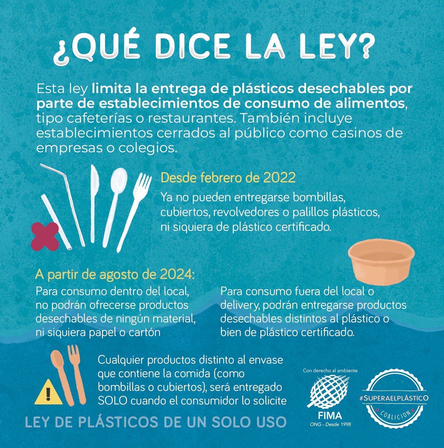 Actualmente, se encuentra en implementación la Ley 21.368 que regula la entrega de plásticos de un solo uso en establecimientos de expendio de alimentos y de botellas plásticas, cuyas primeras obligaciones comenzaron a regir en febrero de 2022. Bombillas, cucharas, tenedores, cuchillos y revolvedores de plásticos de un solo uso, así como contenedores de plumavit, ya no pueden entregarse en ningún local de comida del país. En paralelo, se exige que todos los supermercados ofrezcan y reciban botellas retornables, tanto en sus canales de venta físico como online.