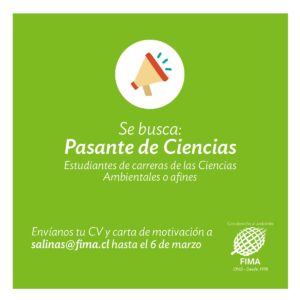 Interesad@s por favor enviar su CV hasta el jueves 6 de marzo con carta de intención al correo a Fernanda Salinas en salinas@fima.cl