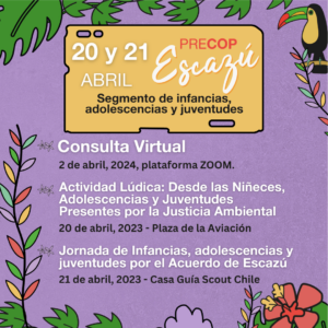 - Jornada de trabajo presencial de Infancias, Adolescencias y Juventudes: 21 de abril en la Casa Asociación de Guías Scouts Chile (República #97, Santiago)